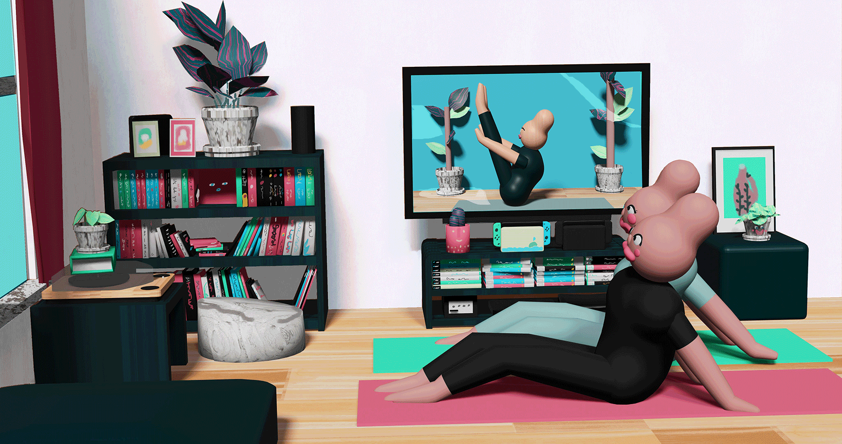 Illustration inspired by a yoga at home journey during quarantine. Mocked within articles on Yoga.